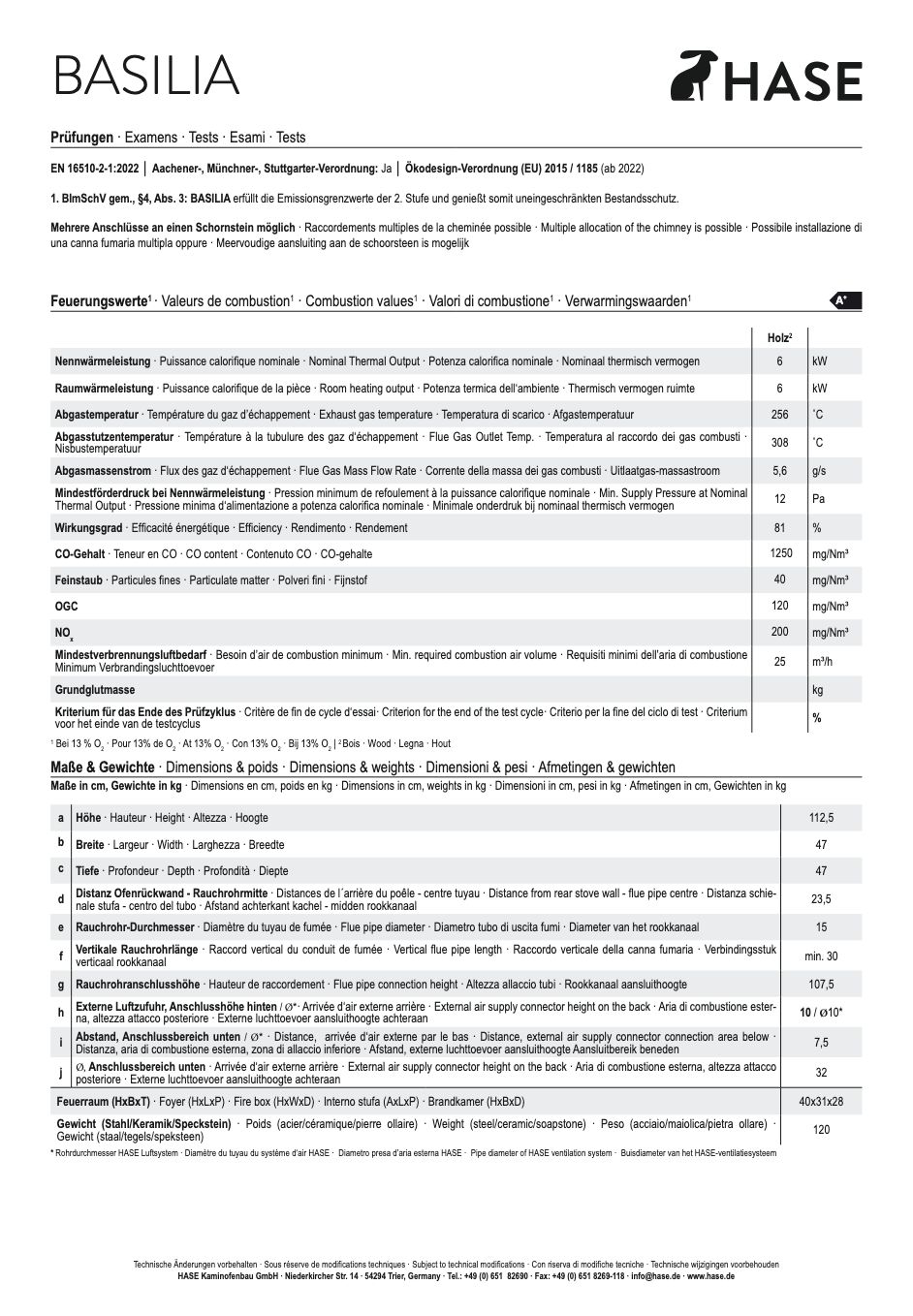 - Hase Luftsystem optional erhältlich, zum anschließen für externe Verbrennungsluft (d:10 cm): Verbrennungsluftstutzen, Flexrohr 1,5 m, Verbindungsstecker, Rosette, Mauerhülse