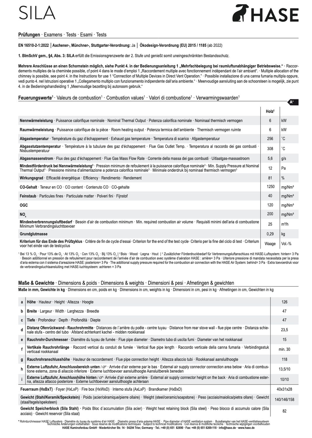 | Gewicht in kg: Stahl Keramik Speckstein Speicherblock Sila Stahl |